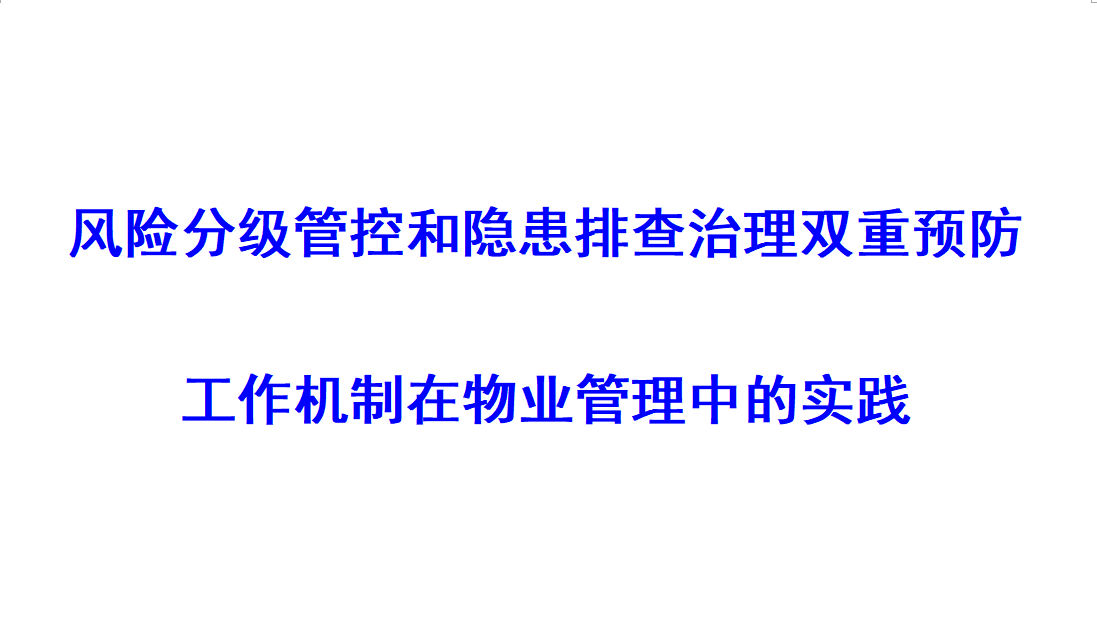 • 風險分級管控和隱患排查治理雙重預防工作機制在物業(yè)管理中的實踐 [2021-01-22]